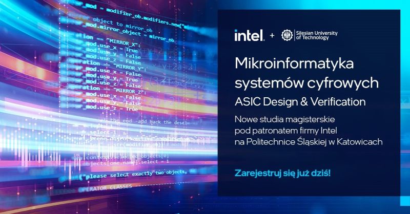Politechnika Śląska uruchamia prestiżowe studia magisterskie Mikroinformatyka Systemów Cyfrowych, realizowane pod patronatem firmy Intel. To kierunek skierowany do studentów i absolwentów kierunków technicznych, którzy chcą rozwijać kompetencje w obszarze projektowania i weryfikacji nowoczesnych systemów cyfrowych – w tym rozwiązań wykorzystywanych w sztucznej inteligencji, układach GPU i zaawansowanej elektronice.